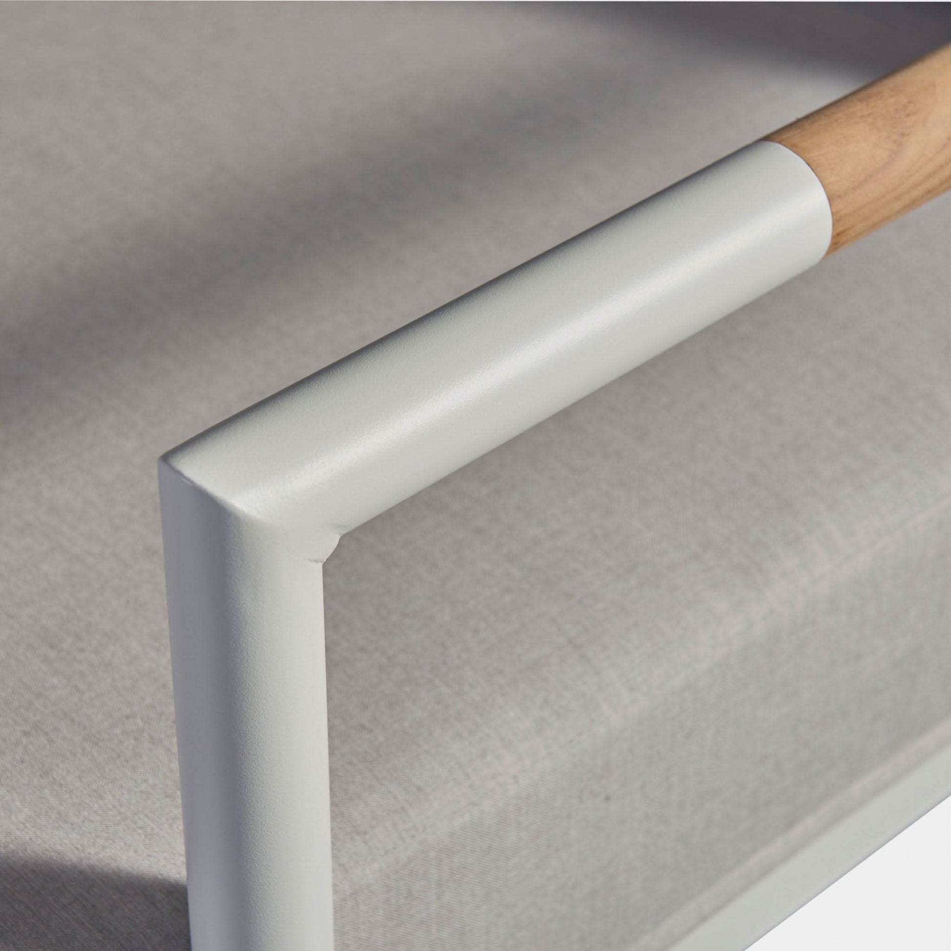 • Frame handcrafted in our workshop of extruded aluminum and solid Indonesian teak inlays in the arms
