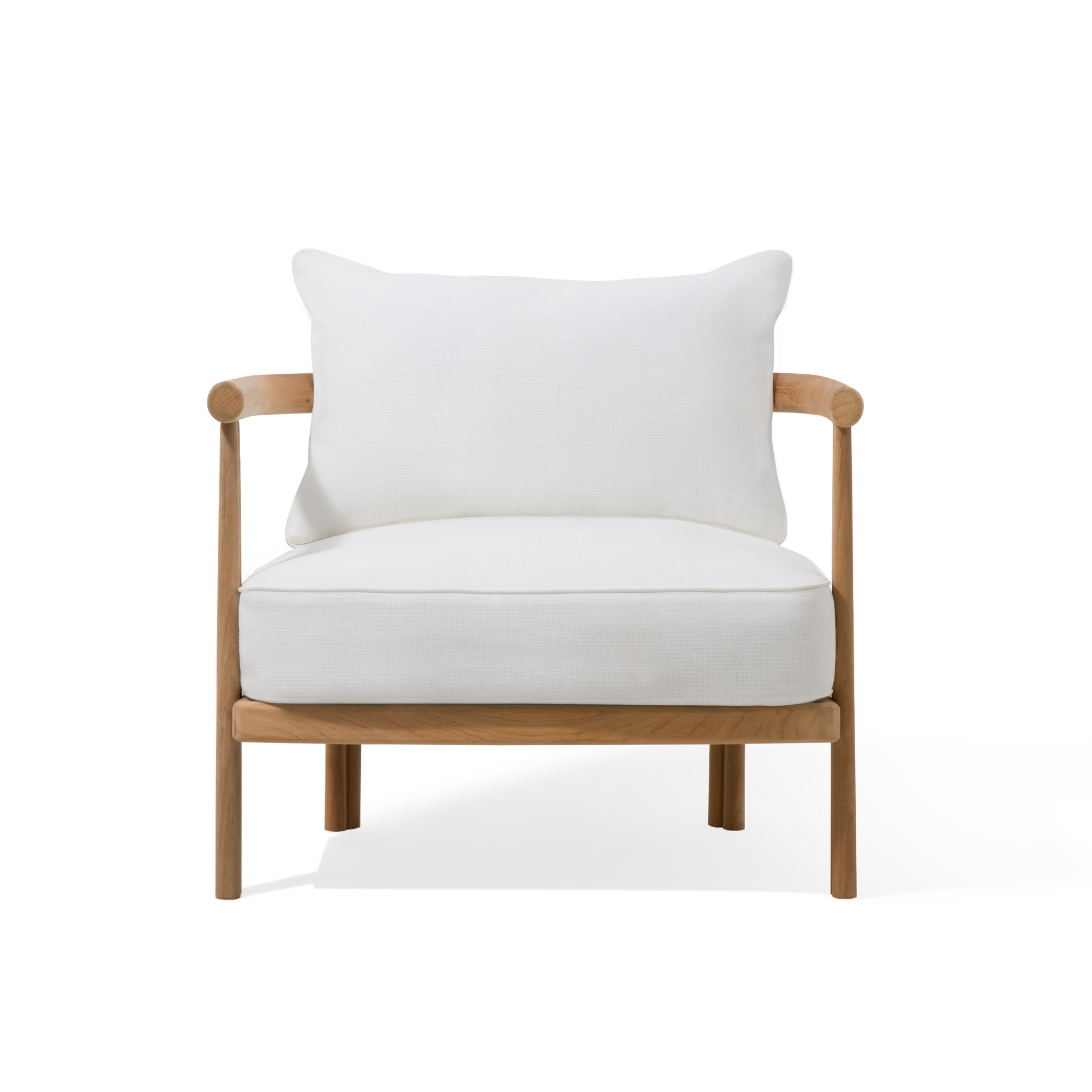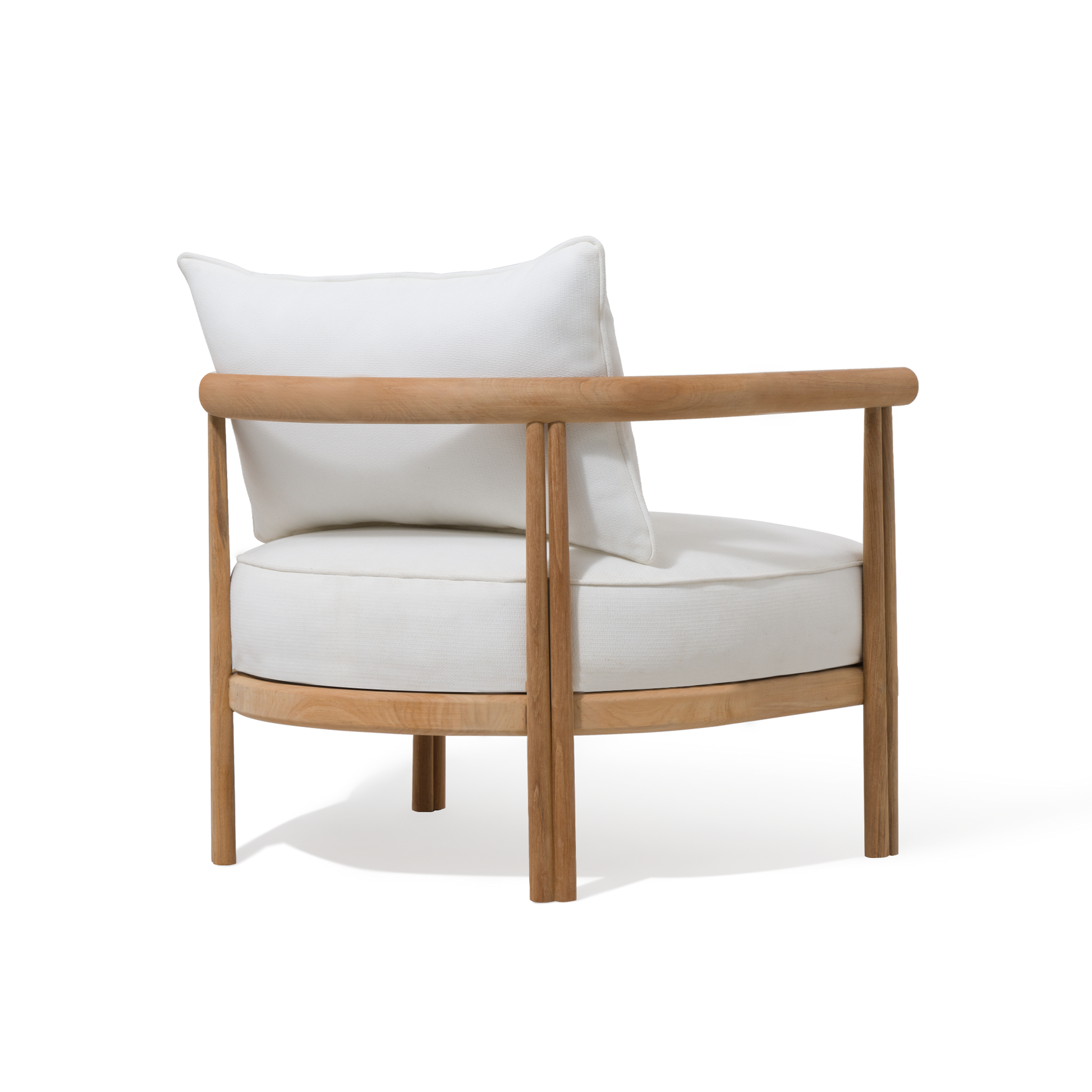 Influenced by modern Australian architecture and landscapes, our Cove Teak collection features special details like double cylindrical legs and curved edges that create soft sculptural silhouettes. The Cove Teak Lounge Chair is contemporary comfort, featuring a refined solid teak frame with an architectural double leg detail and striking curved back. Enjoy plush all-weather cushions and a generous bench cushion that invites sink-in comfort. Tracery and light with a footprint to match, this unique outdoor sofa is a versatile design element for any space.