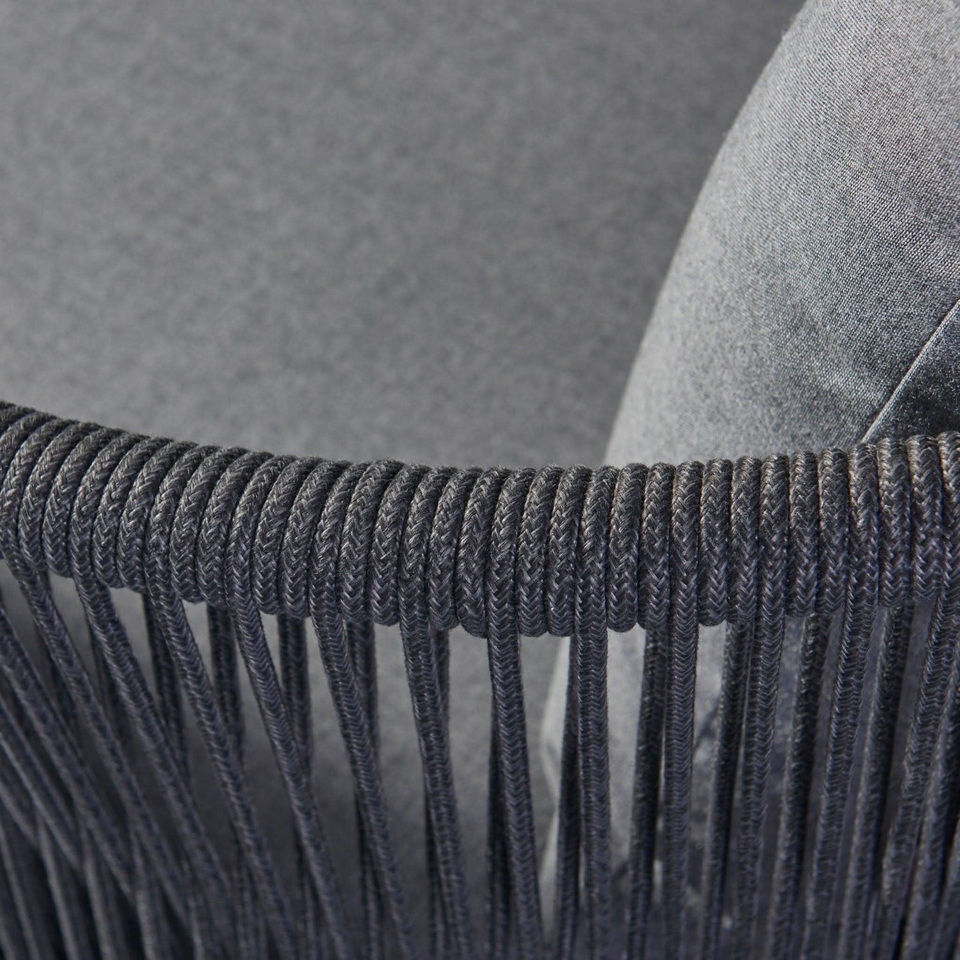 • Back and arms hand wrapped with all–weather Olefin rope, a defining feature of the collection that adds comfort and visual interest
