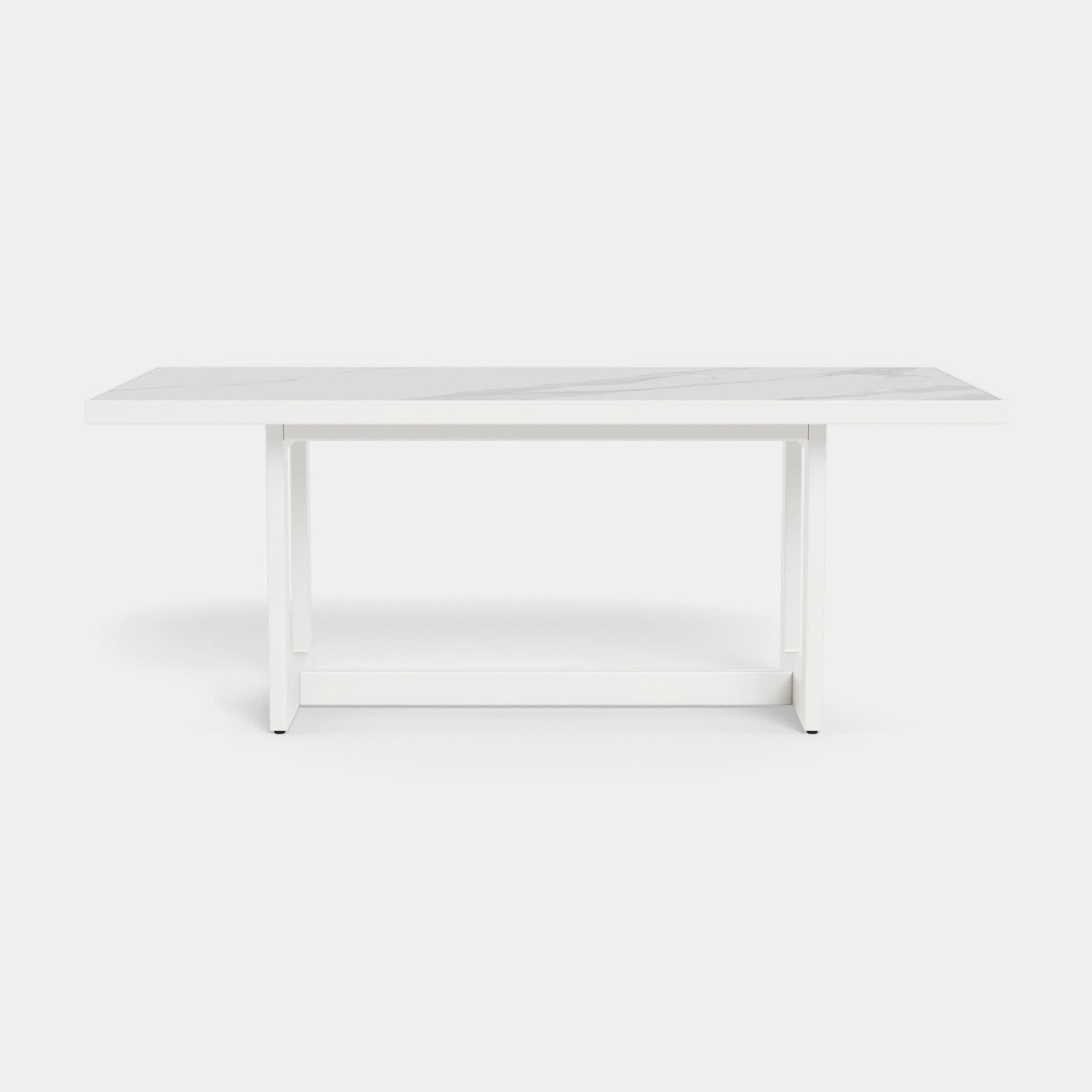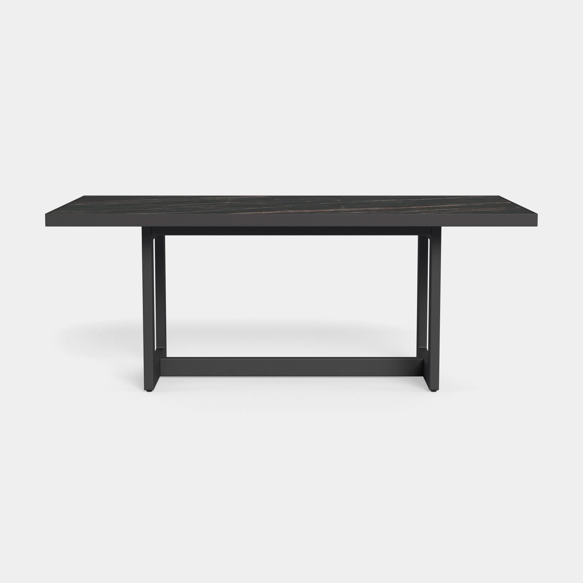 Our Hampton collection layers interesting angles with simplicity of form for a harmonious design. The Hampton Dining Table 2000 is an elegant update to a timeless table that's perfect for up to eight — featuring square geometries of extruded aluminum supporting an Italian ceramic top with a beautiful pattern of natural swirls. A showpiece that's easy to maintain, this smaller rectangular option is a perfect fit for any outdoor space.