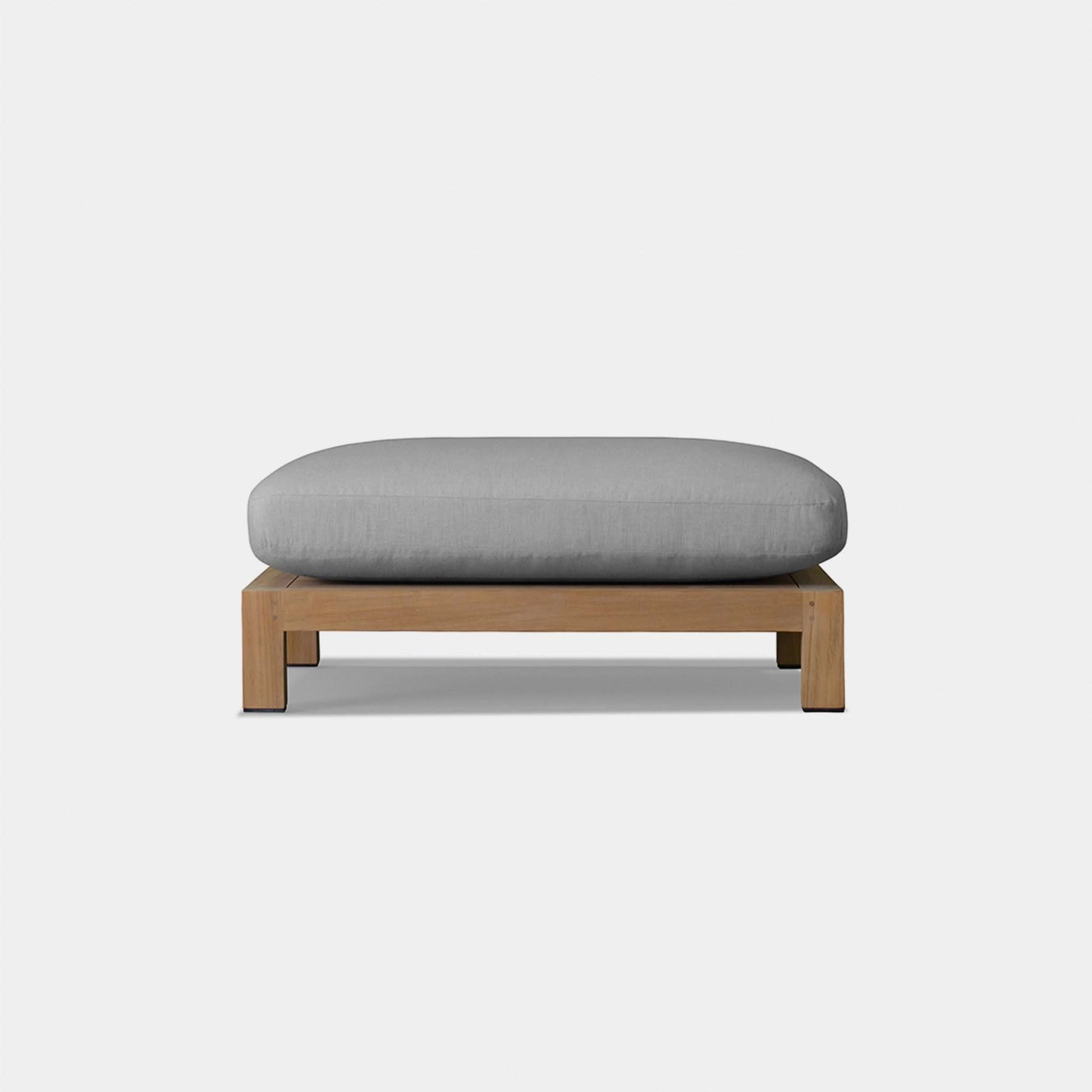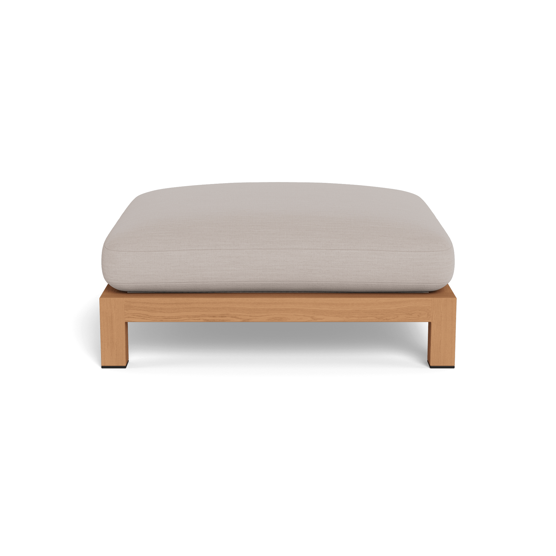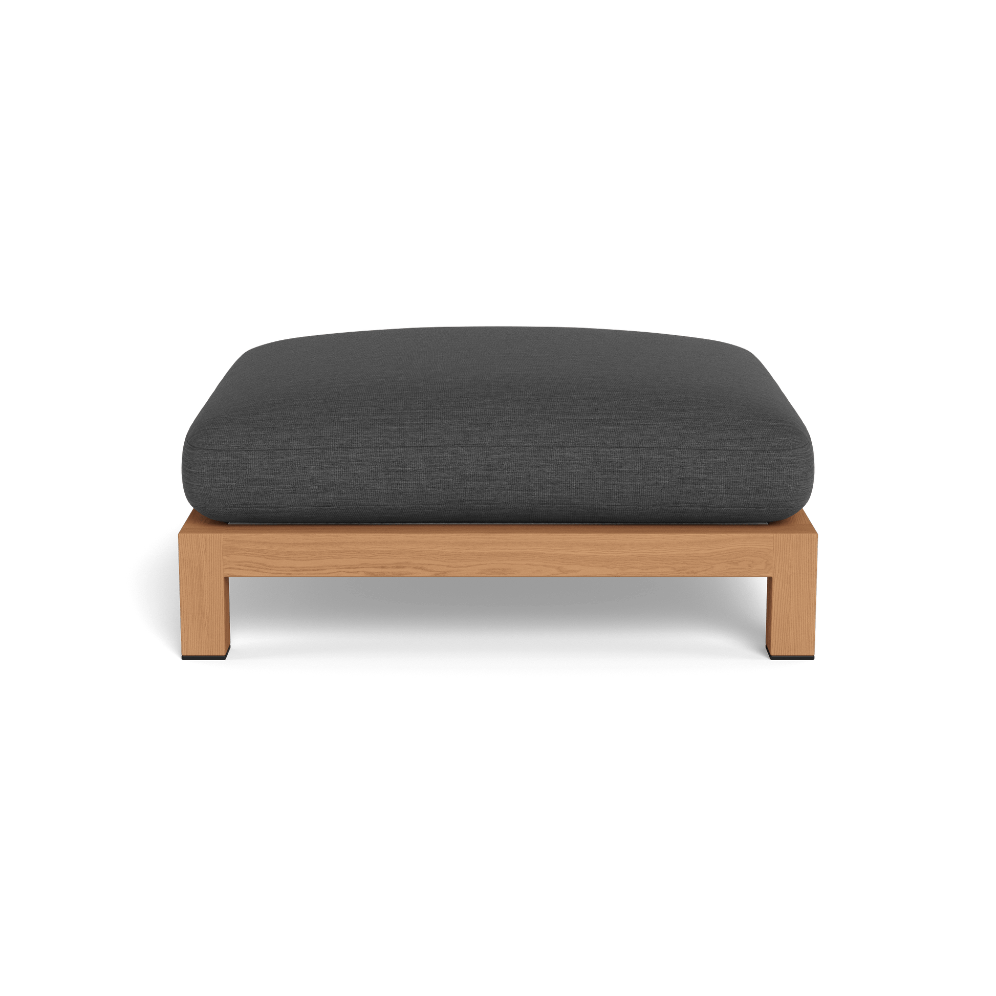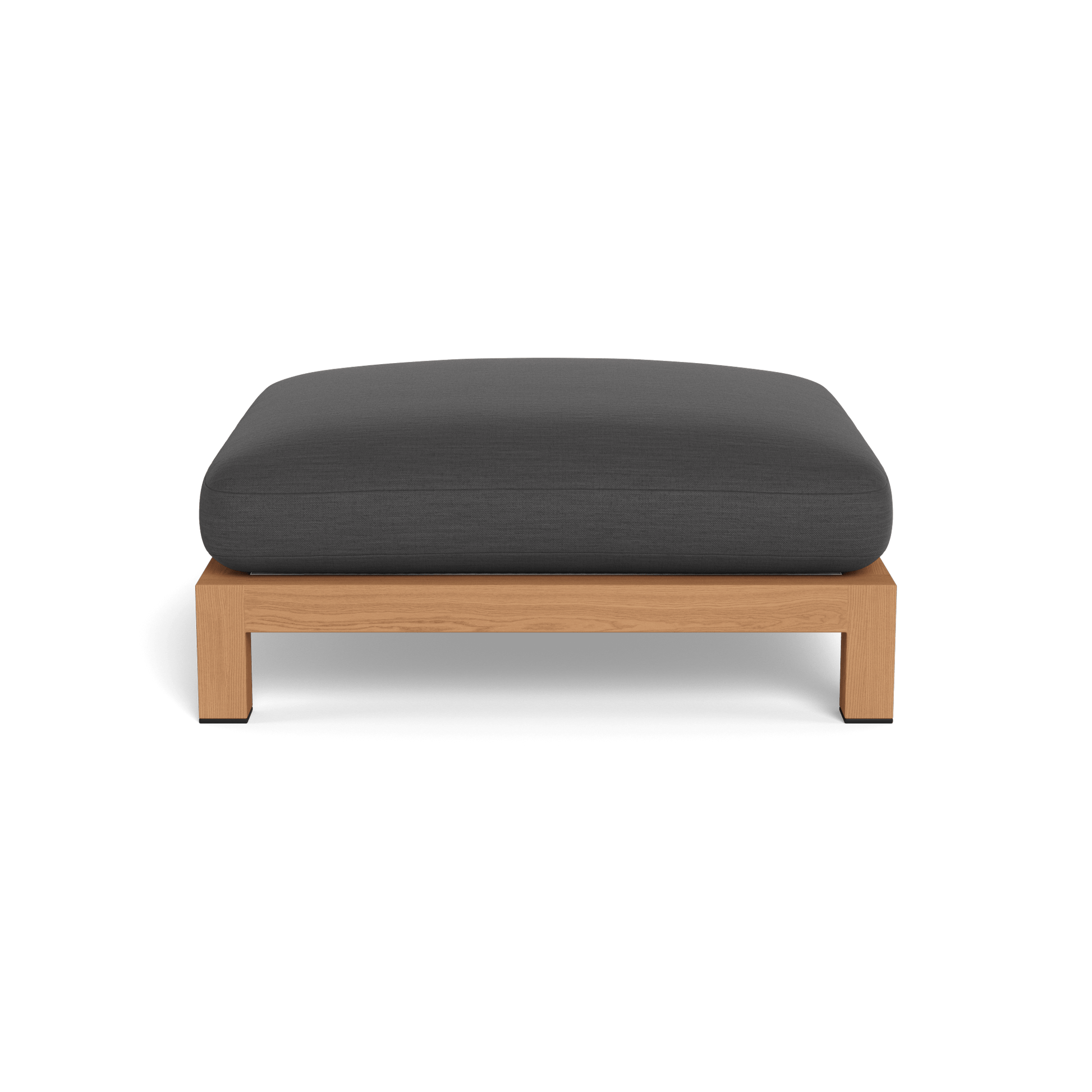 Our Pacific collection features clean lines with a California rustic essence. Part of our sectional collection, the Pacific Ottoman is streamlined comfort — put your feet up on a plush domed seat cushion available in a range of neutral tones supported by a Batyline sling suspension in White or Black for added comfort. Handcrafted from square beams of solid Grade A Indonesian teak in Charcoal or Natural, this modern outdoor ottoman effortlessly fits in any space and pairs with any Pacific component for instant extended seating.