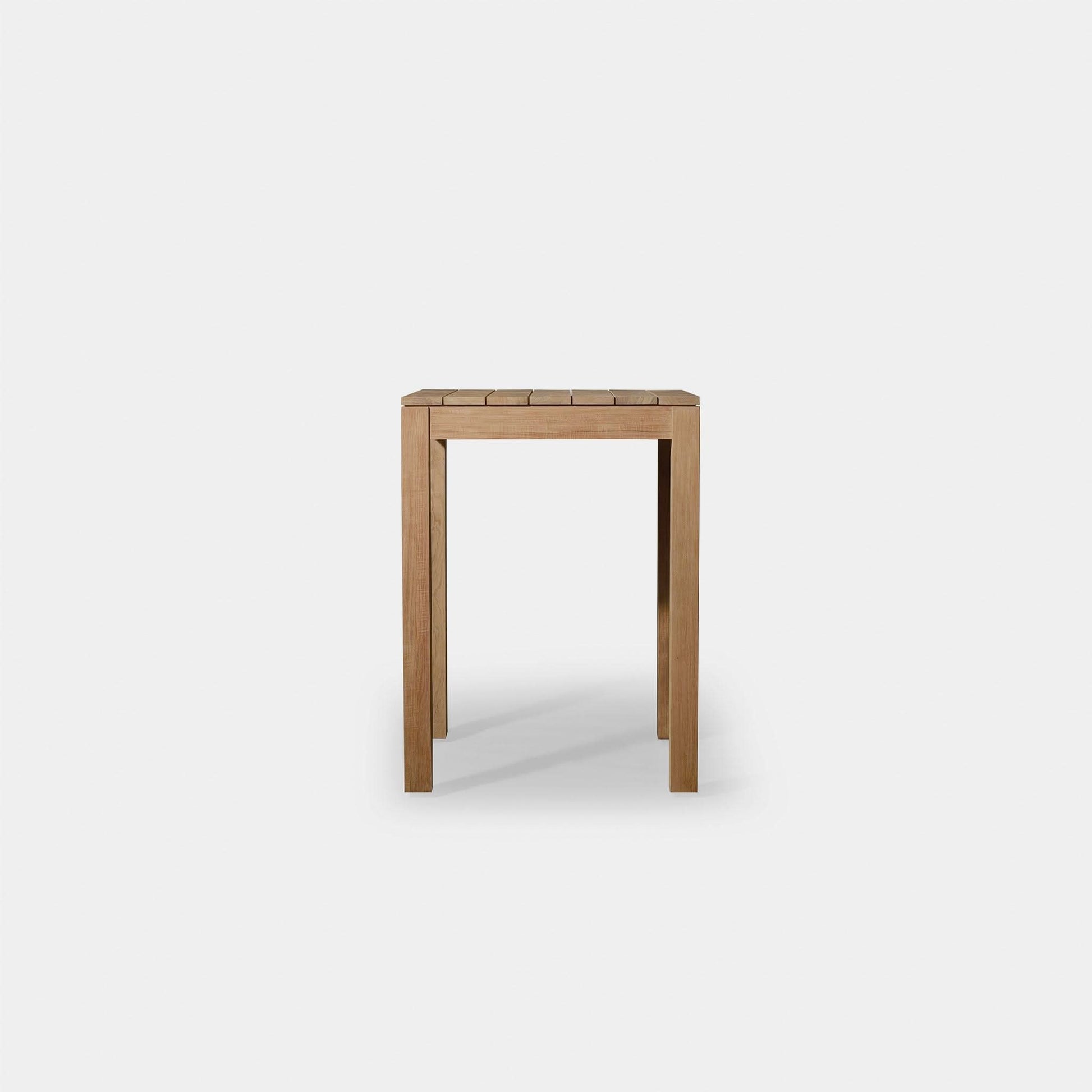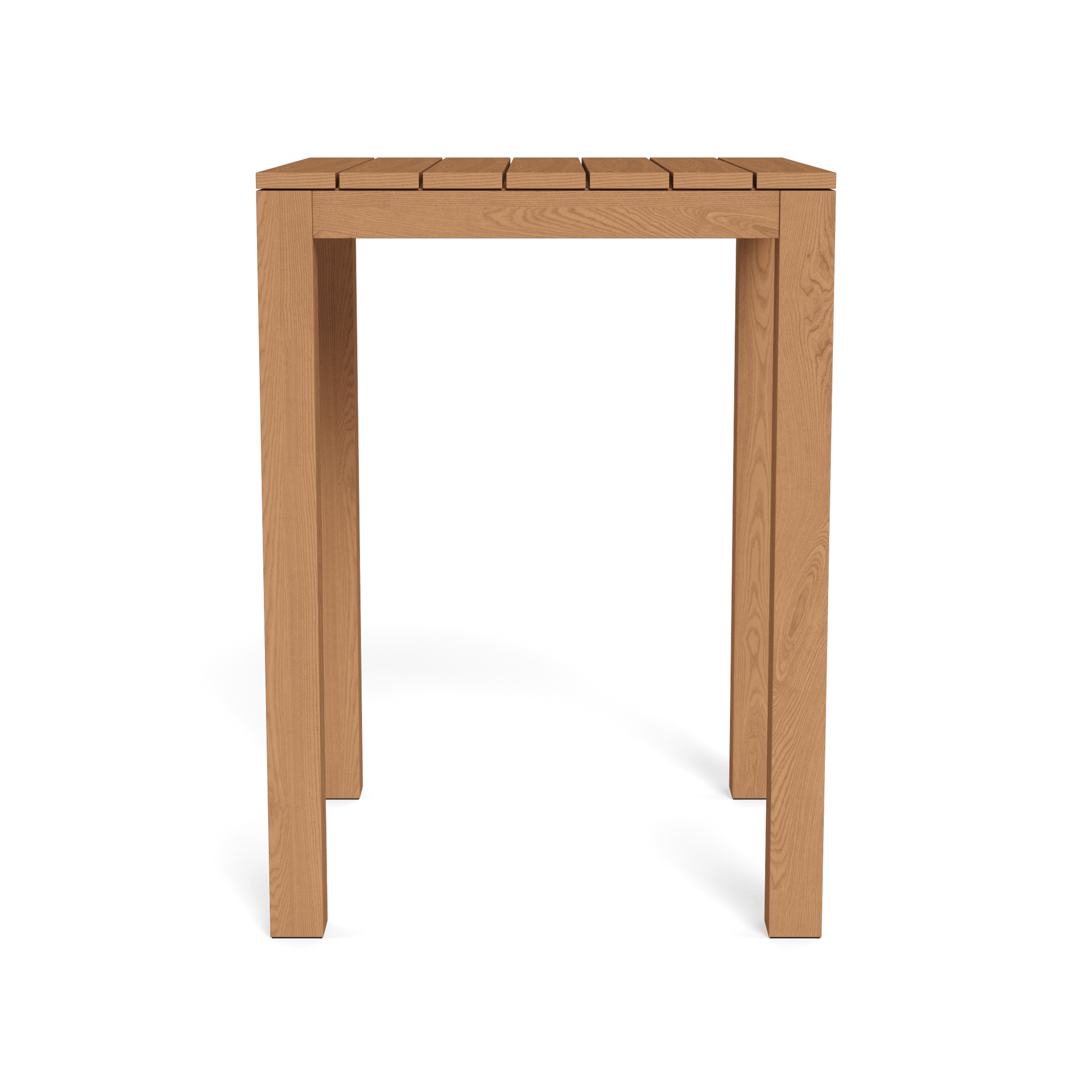 Our Pacific collection features clean lines with a California rustic essence. The Pacific Square Bar Table is the perfect gathering place — handcrafted in solid Grade A Indonesian teak with a simple slatted top for maximum functionality. The base is available in Natural teak or White or Asteroid Aluminum. Our smaller bar table, this modern bar height table effortlessly fits in any outdoor space, offering an ideal surface for entertaining.