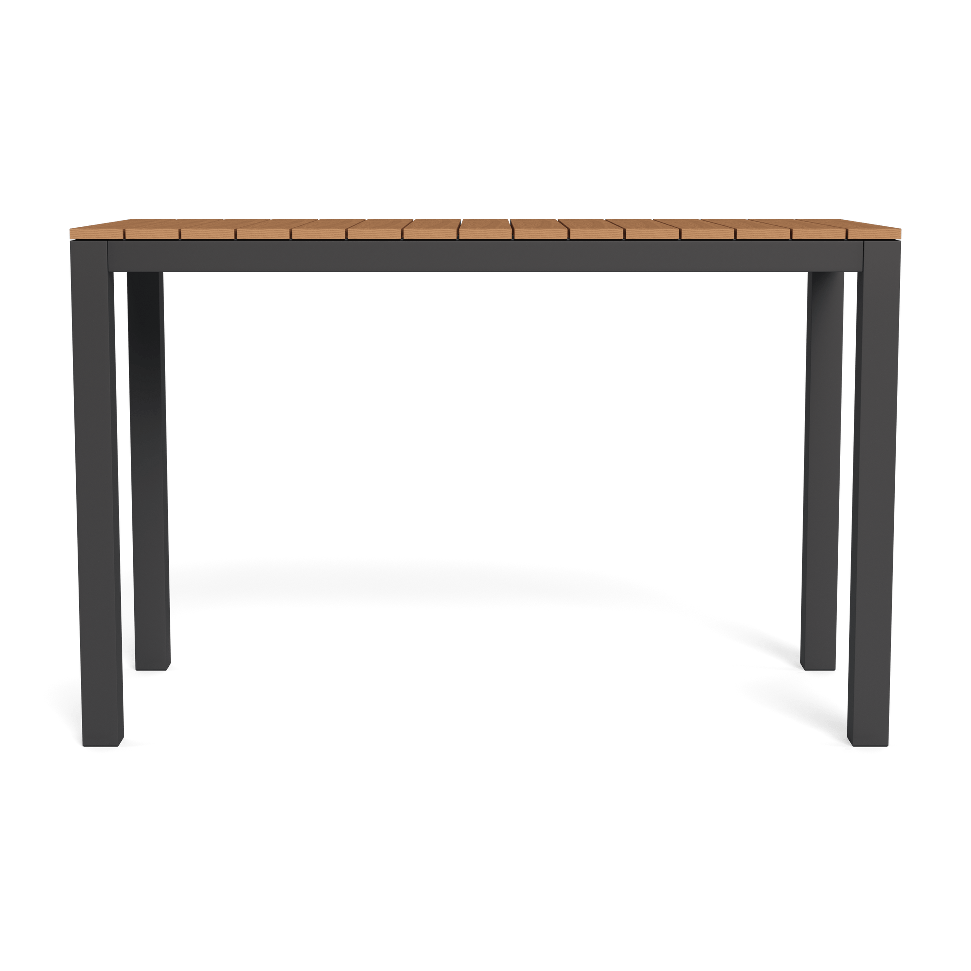 Our Pacific collection features clean lines with a California rustic essence. The Pacific Rectangle Bar Table is the perfect gathering place — handcrafted in solid Grade A Indonesian teak available in Charcoal or Natural with a simple slatted top for maximum functionality. The base is available in Natural teak or White or Asteroid Aluminum. Our larger bar table, this modern bar height table effortlessly fits in any outdoor space, offering an ideal surface for entertaining.