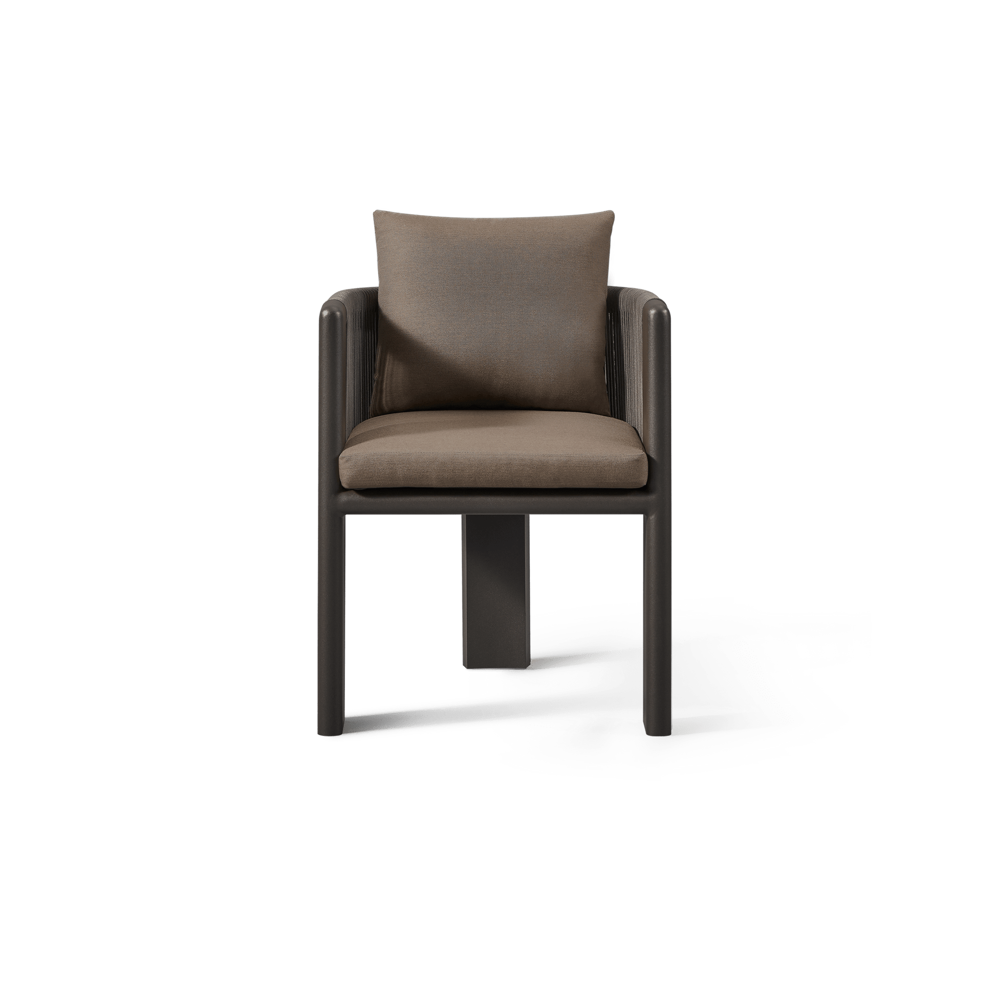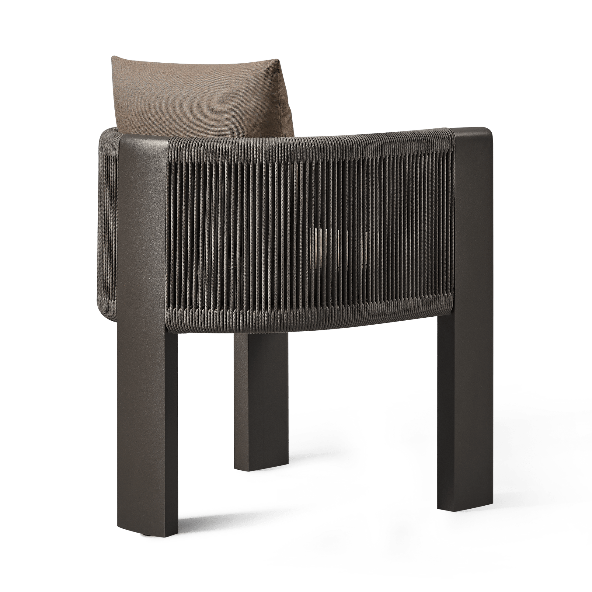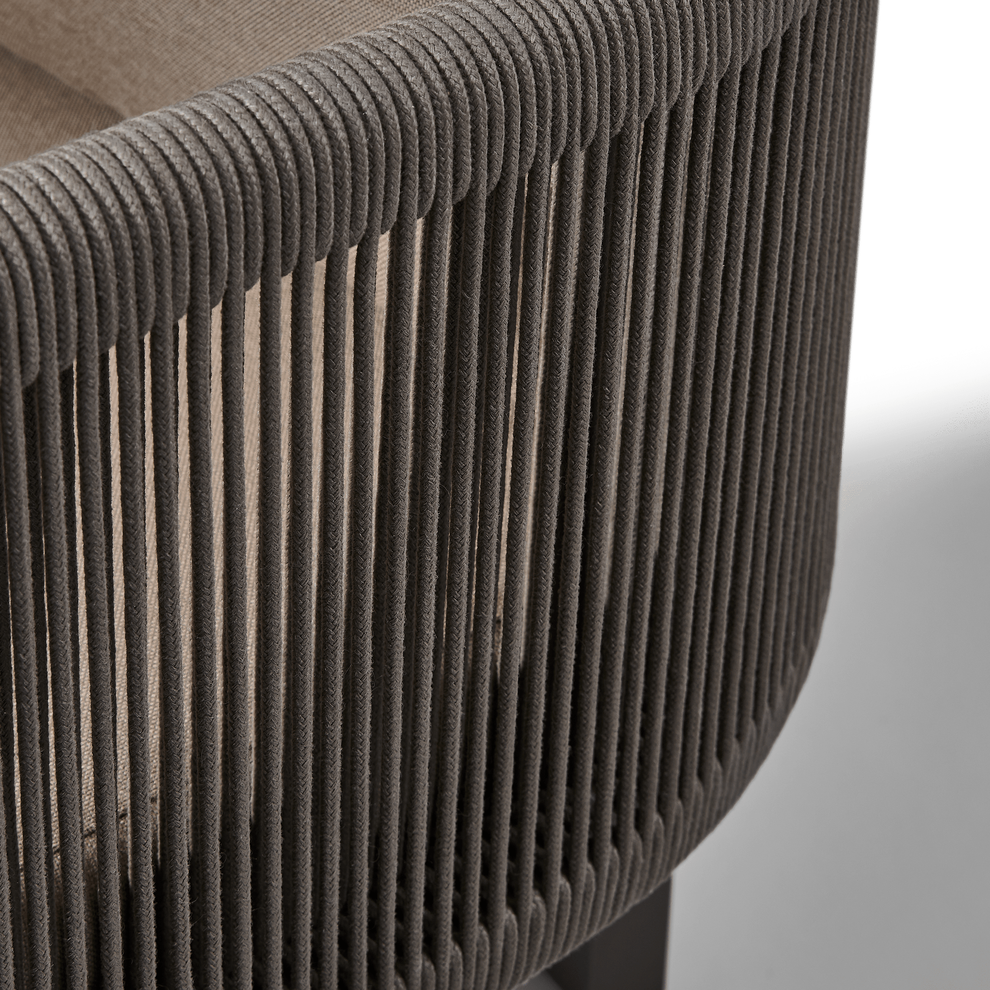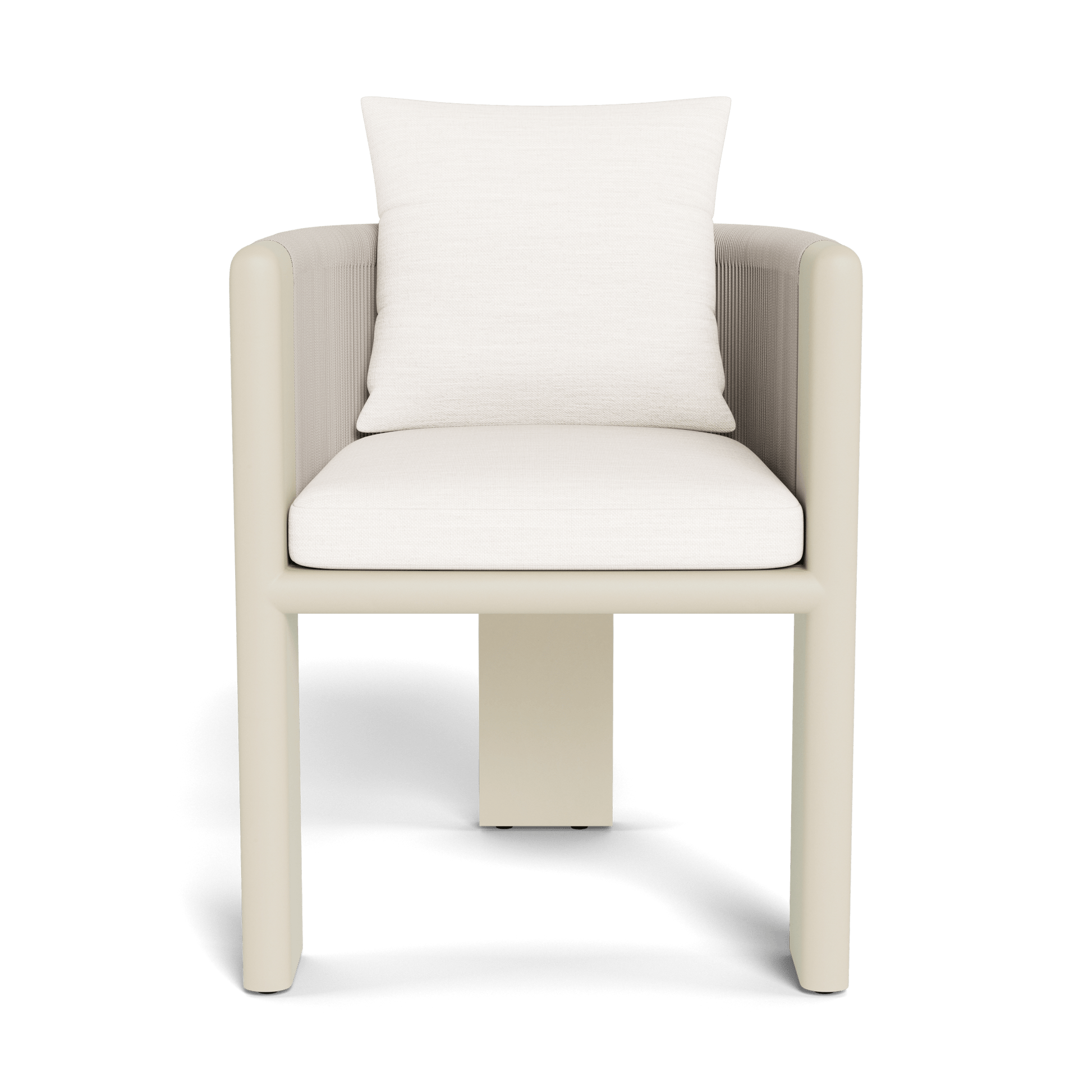 A nod to Sydney’s iconic Palm Beach with its stately coastal pines. Rounded backs, vertical rope detailing and a harmonious mix of materials infuse classic silhouettes with modern elegance. Transitional in spirit, the Palm Beach Aluminum Dining Chair is a refreshing update to our signature classics—enjoy a comfortable seat cushion with a knife–edge back pillow on a supportive slatted suspension in the just–released colorway of Stone. The powder coated extruded aluminum frame features vertically woven all–weather rope and plays with materials and form. In the back, a single leg adds style and interest, echoing the tripod construction of the collection’s chairs. This comfort–driven piece seamlessly blends with many styles and in many outdoor spaces. Complete your outdoor dining set with the matching dining table.