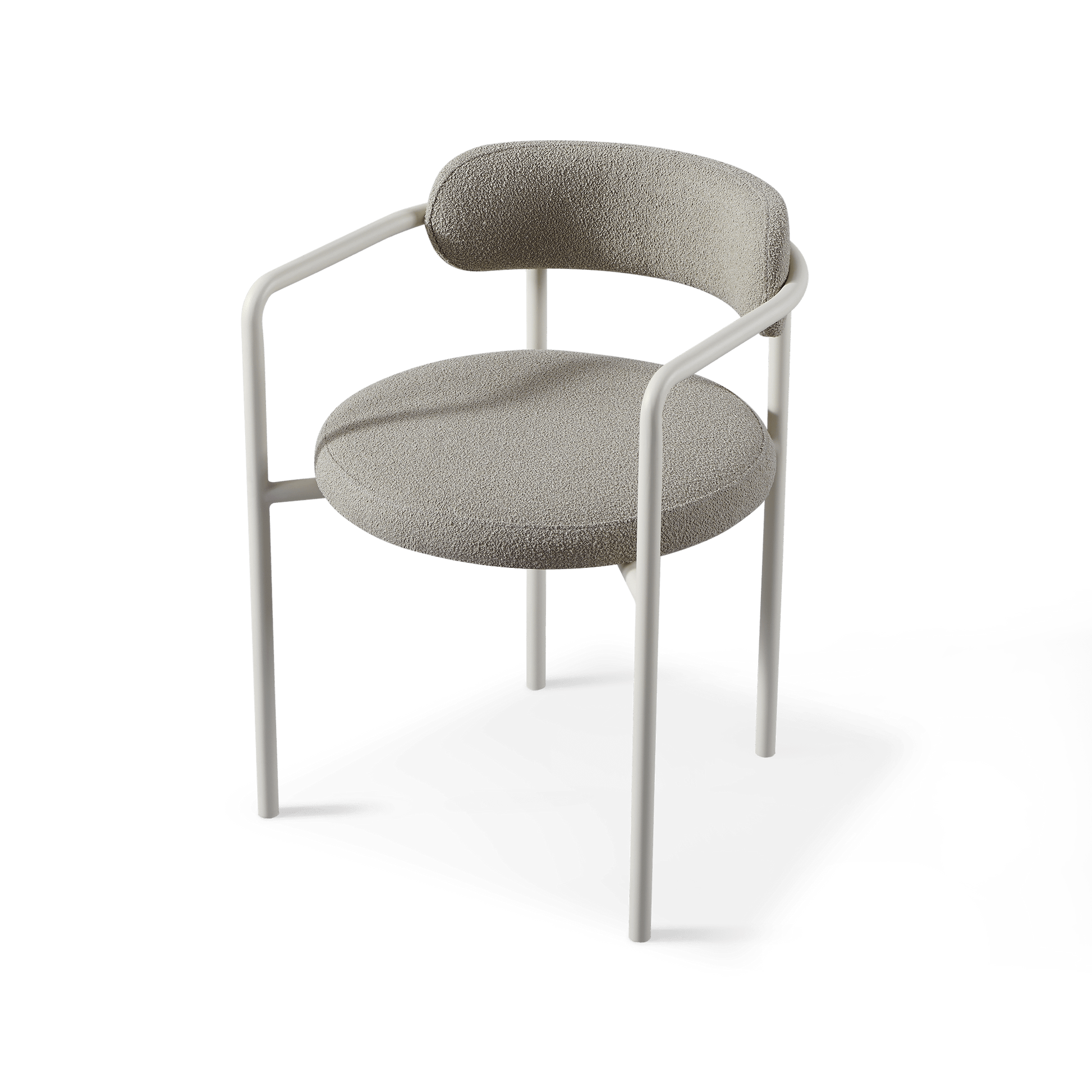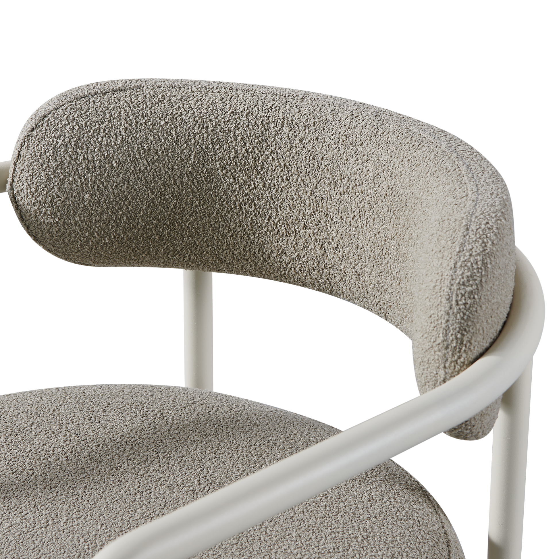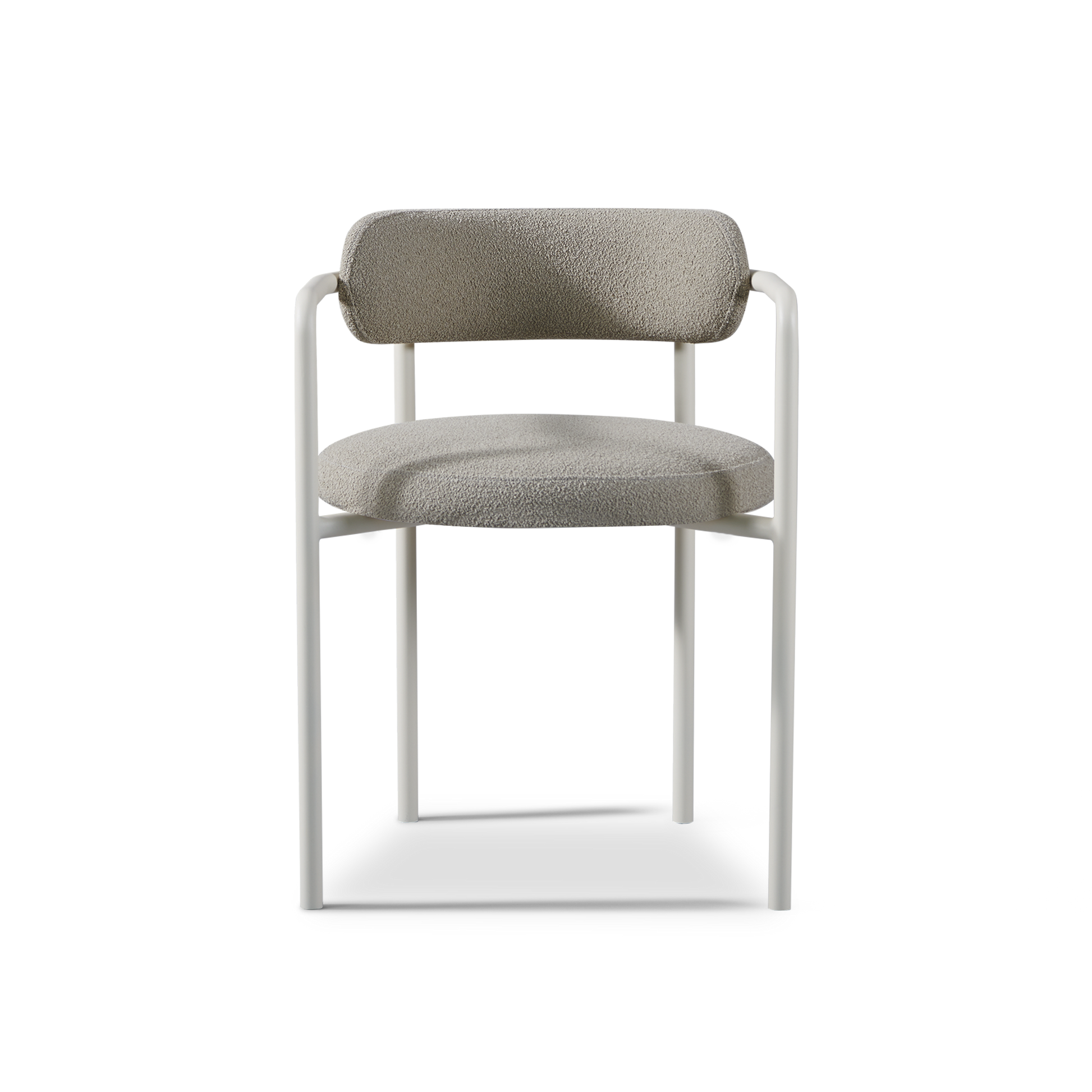 A contemporary and classic study in soft curves, our Porto collection creates a natural interplay between shadow and light with sculptural forms in the base. The Porto Dining Chair is true comfort — featuring a frame of thin aluminum tube in Aluminum Bone upholstered in performance textiles in Riviera Ivory. Streamlined and elegantly simple, this great all–around outdoor dining chair echoes the signature curves and rounded shapes of the collection's tables and pairs nicely with a variety of other collections as well. Place it with any dining table to complete your outdoor dining set.