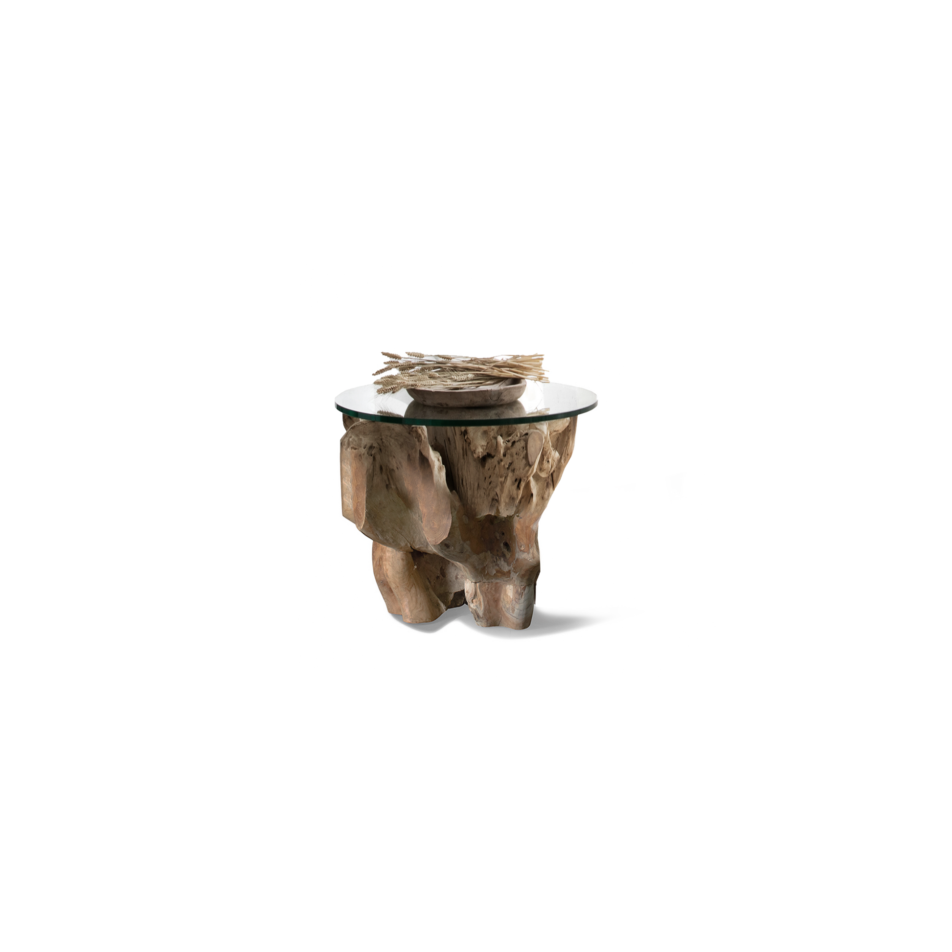 Our Pure collection focuses on teak as its primary material — interpreting natural roots, stumps and live edges as everyday lifestyle pieces. Our smaller coffee table, the Pure Root Coffee Table 800 is bespoke outdoor beauty — we hand select solid Indonesian teak roots with defining details to let the personality of the wood shine, supporting a glass top. Its unique organic shape makes this piece the perfect contrast to any style. Due to the design's raw aesthetic, variations in size and the number of roots will occur for a truly one–of–a–kind table.