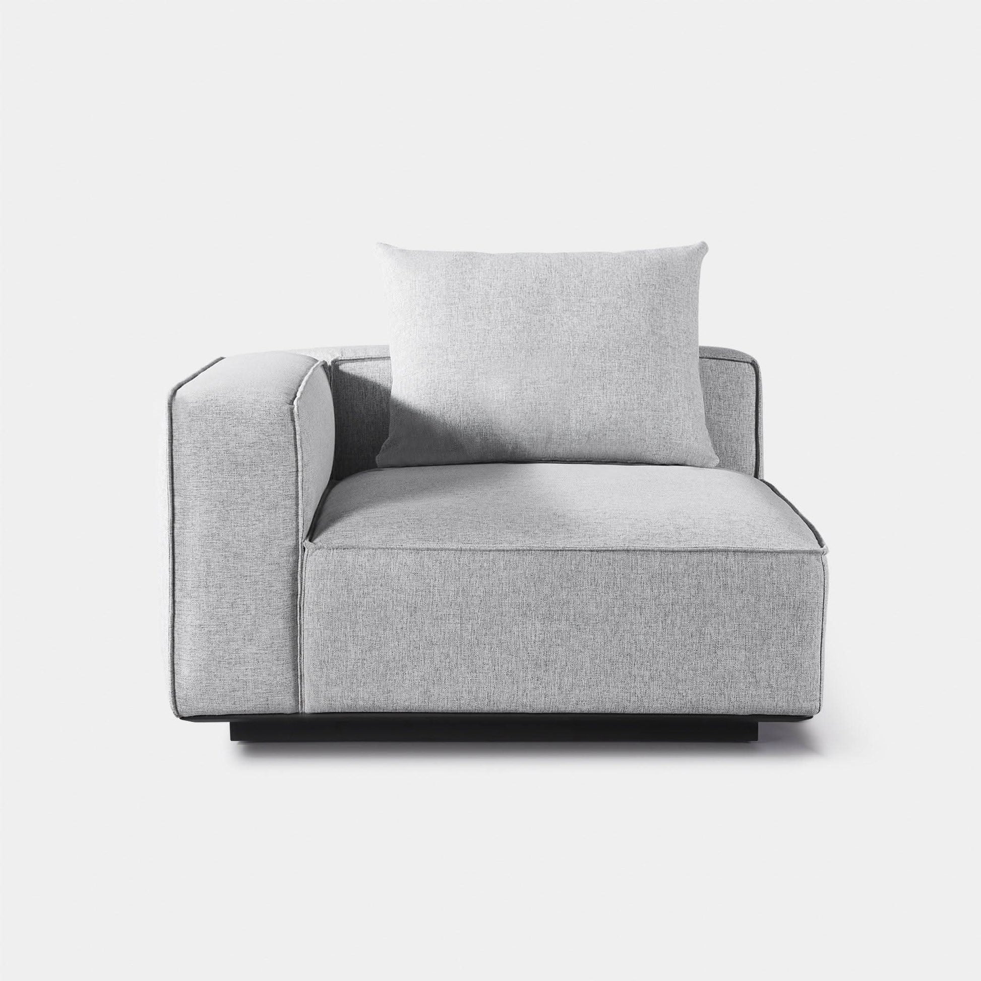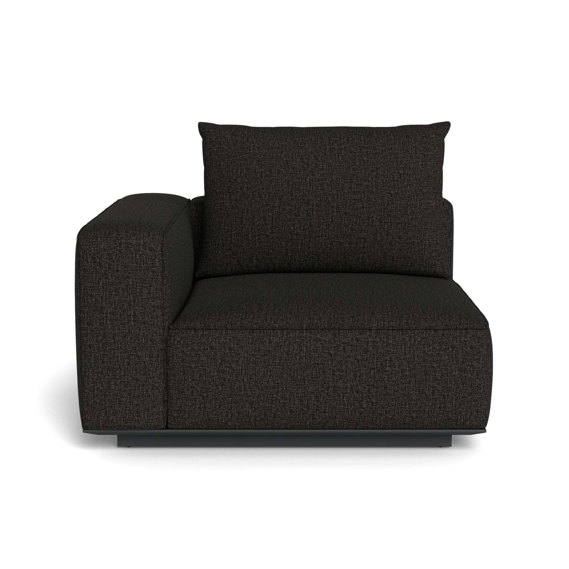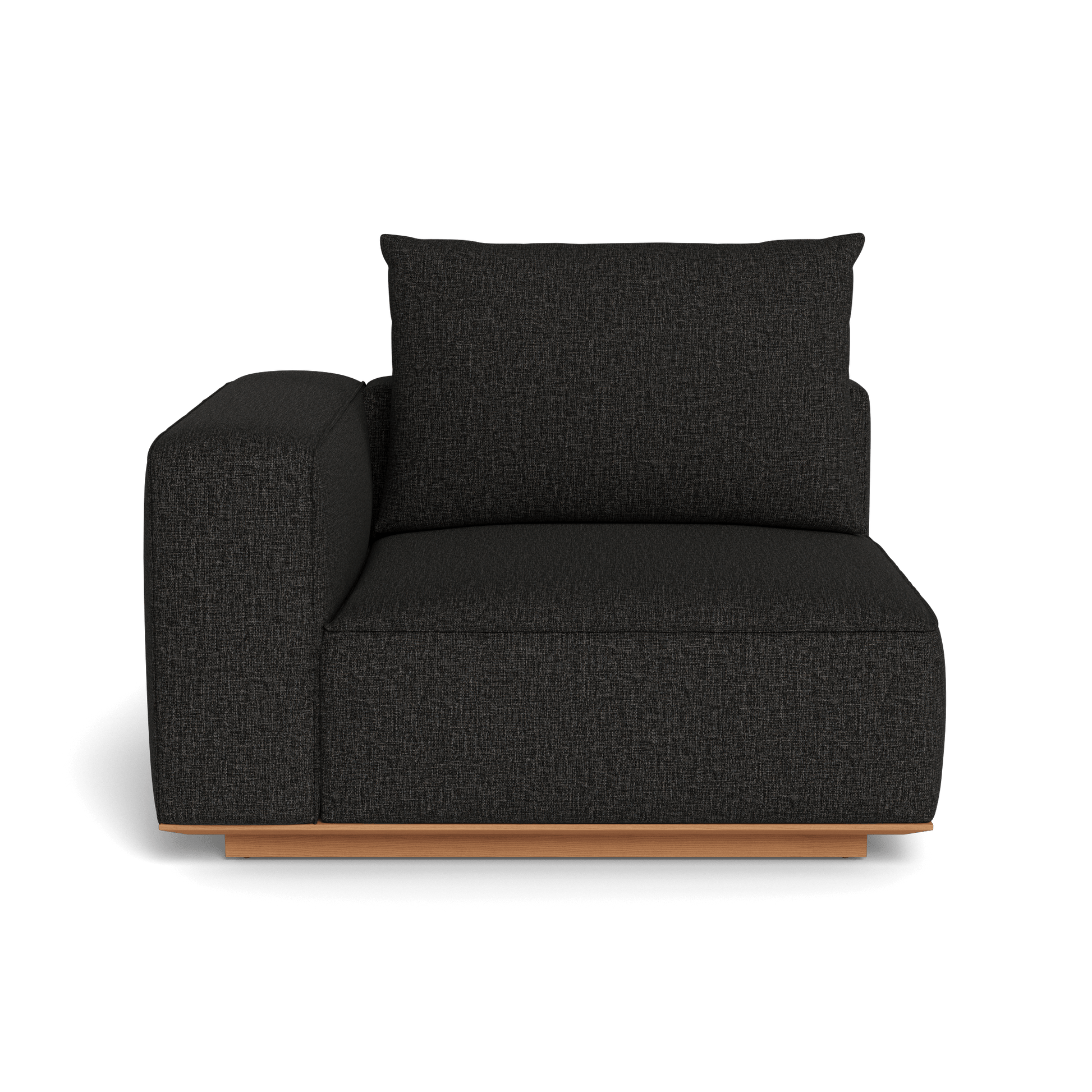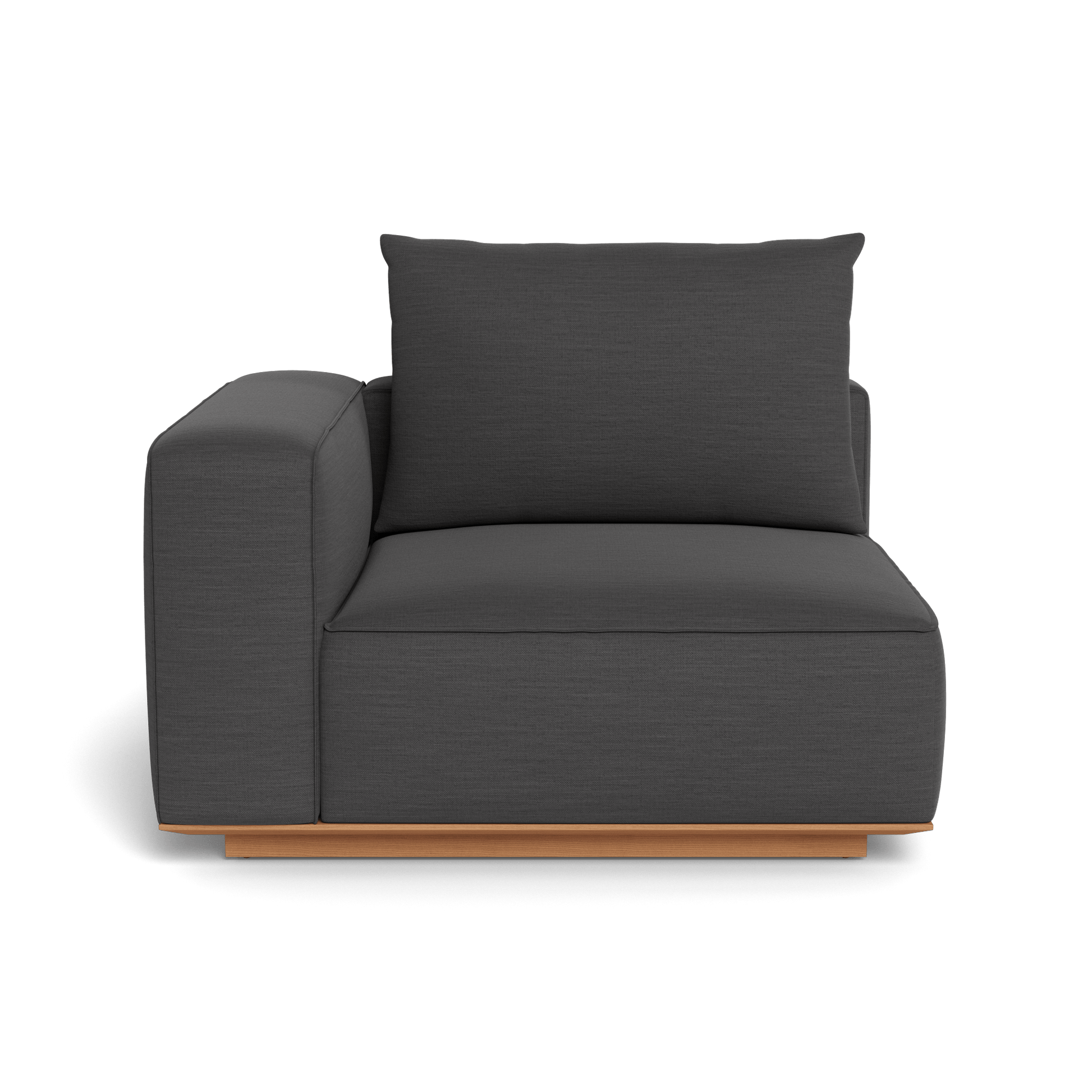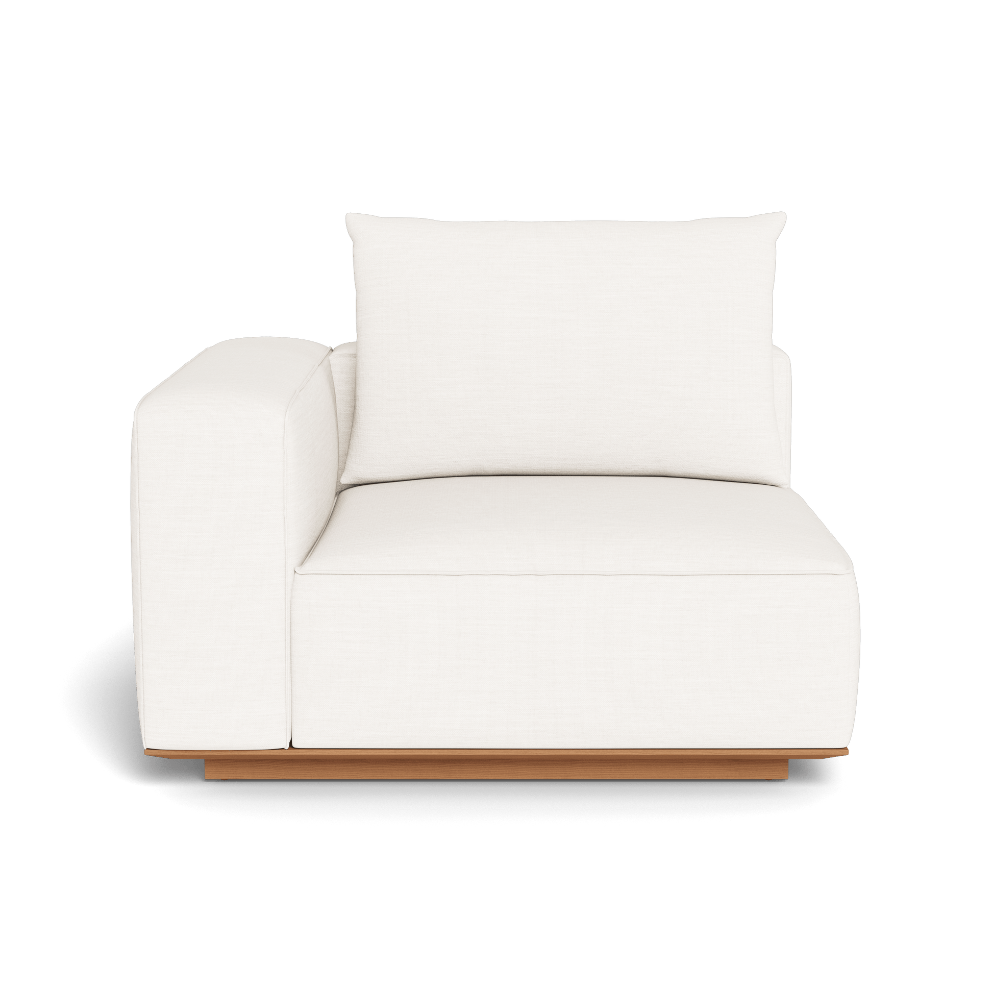 Building on our years of experience in outdoor design, the popular fully upholstered Santorini collection offers versatility in modular seating. Our Santorini Outdoor Corner Left is pure comfort — sink into an extra generous tight seat cushion available in a range of neutral tones with an all–weather suspension system and accent pillows, all floating on a plinth base in a choice of Asteroid aluminum or Natural teak. This easygoing modular sofa can be configured with unlimited Armless Singles and Ottomans to build a moveable, flexible sectional sofa for an existing space — and is always adaptable to the next space.