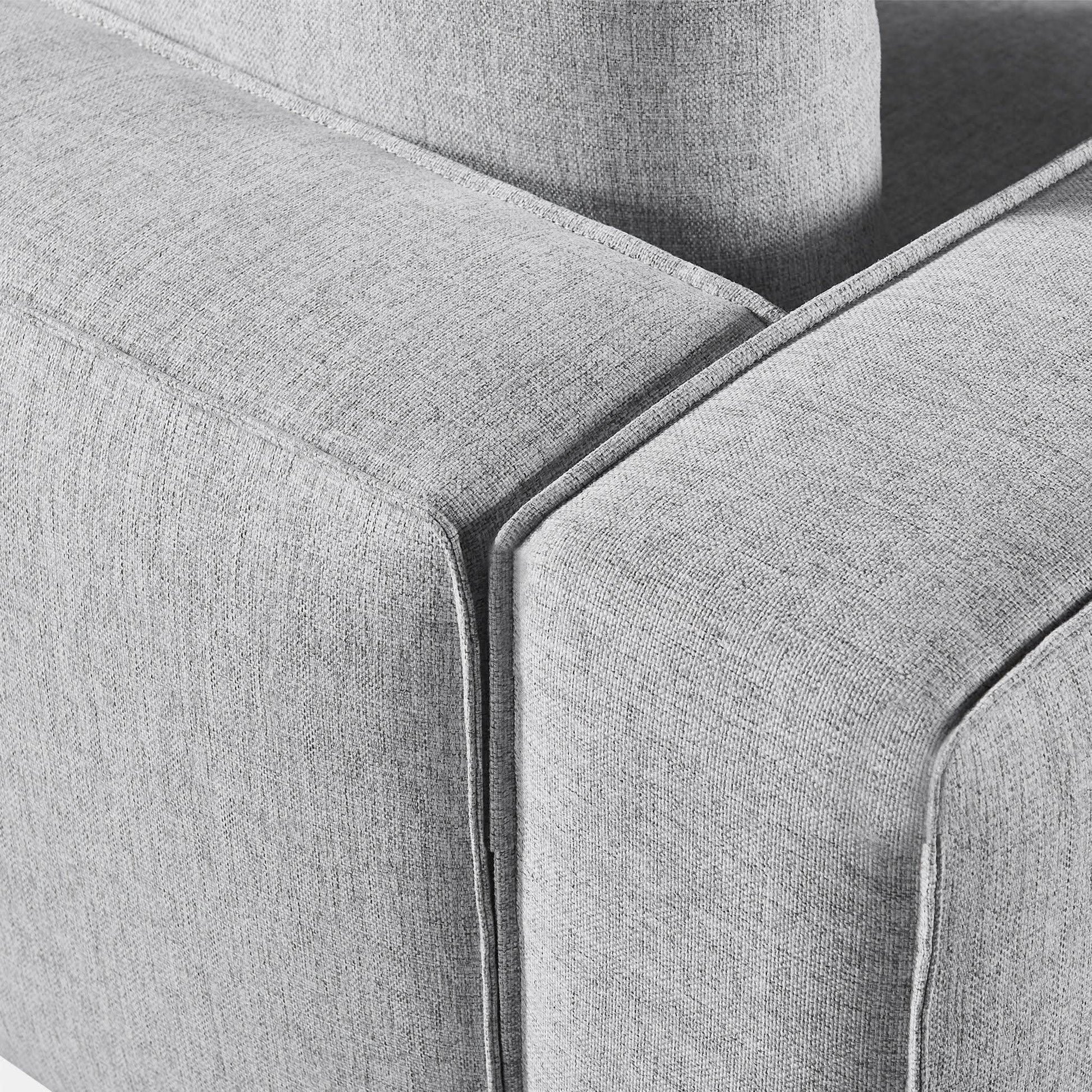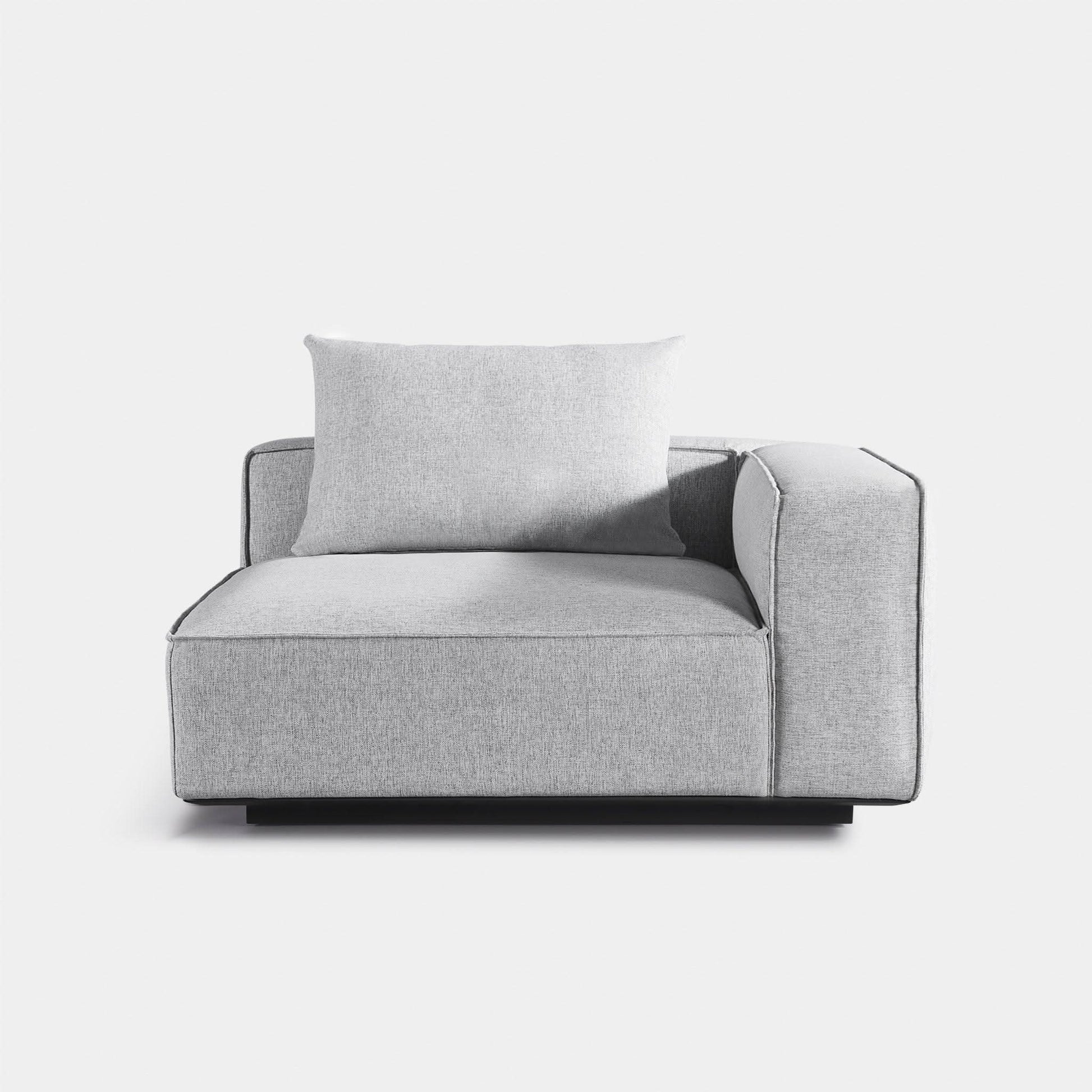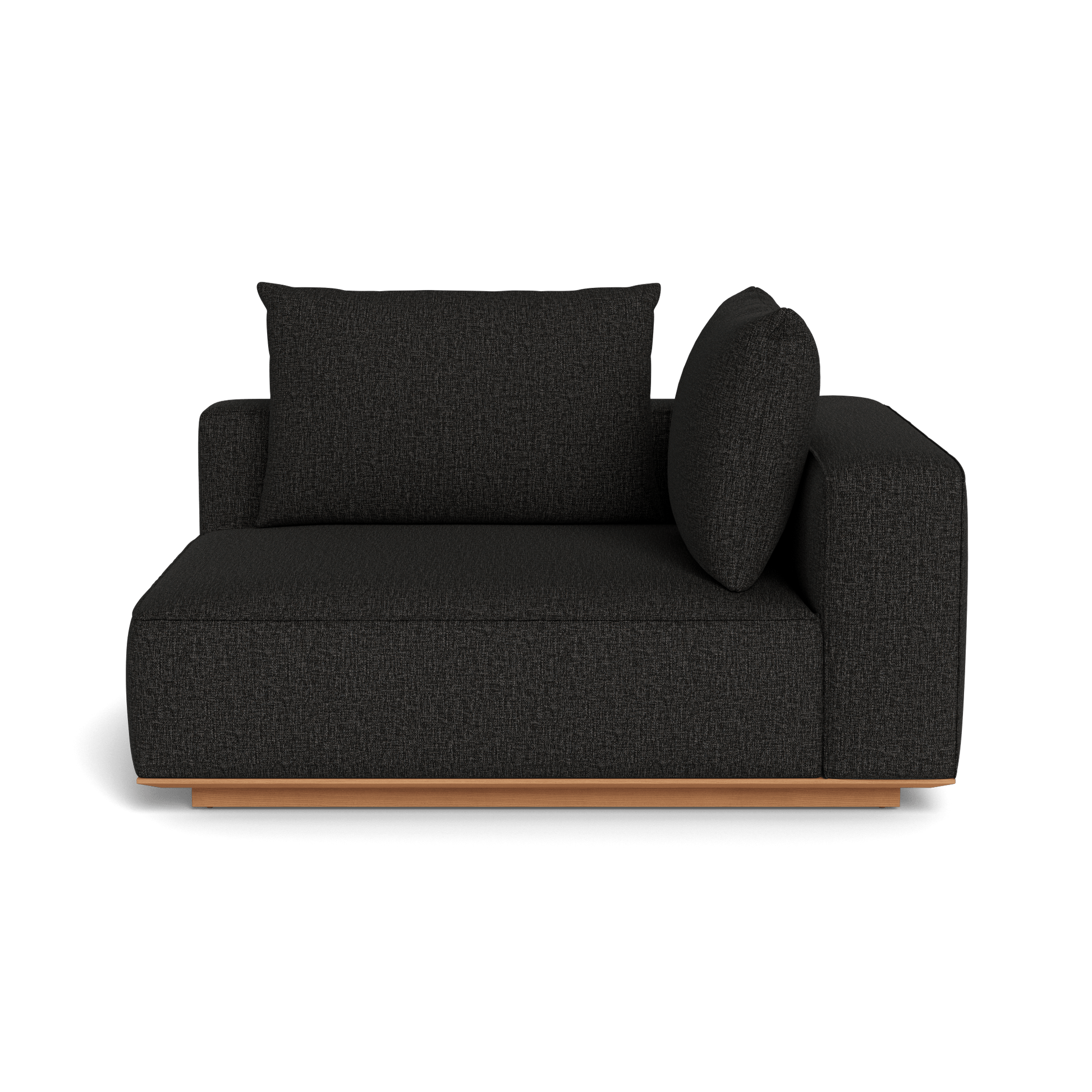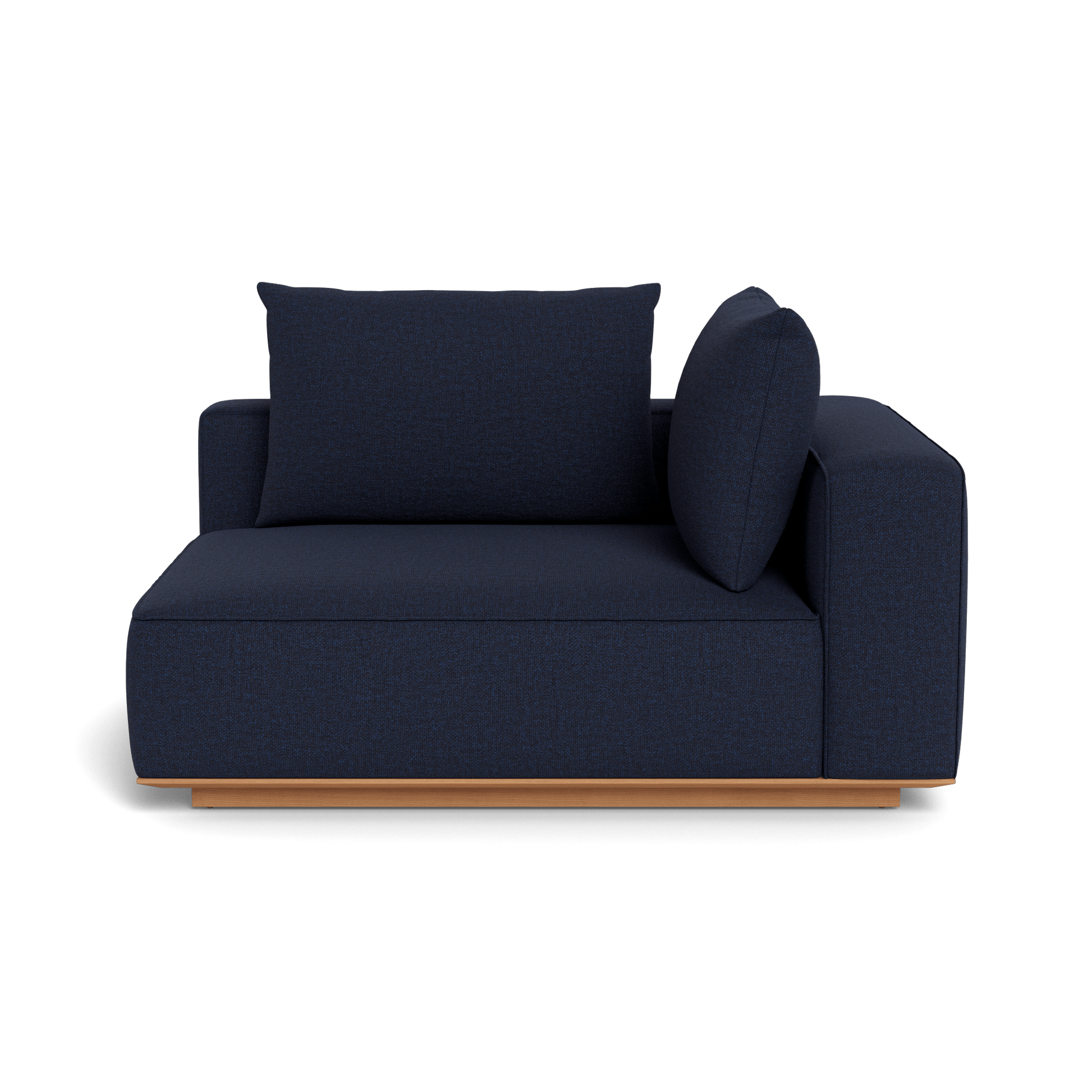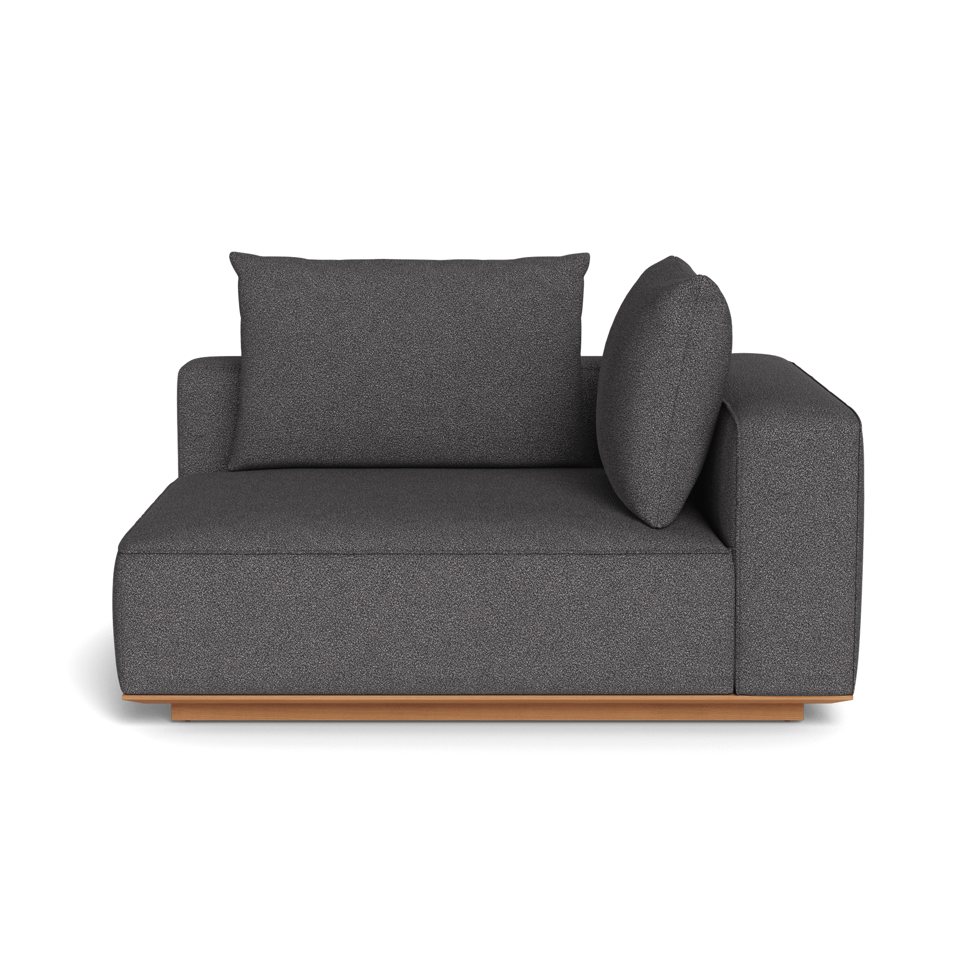 Building on our years of experience in outdoor design, the popular fully upholstered Santorini collection offers versatility in modular seating. Our Santorini Outdoor Return Right is pure comfort — sink into an extra generous tight seat cushion available in a range of neutral tones with an all–weather suspension system and accent pillows, all floating on a plinth base in a choice of Asteroid aluminum or Natural teak. This easygoing modular sofa can be configured with Armless Singles, Ottomans and other Returns to fit an existing space — and is always adaptable to the next space.